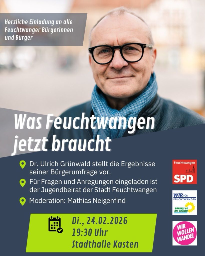 Ich lade Sie herzlich ein, mit mir ins Gespräch zu kommen, Ideen zu teilen und Feuchtwangen gemeinsam positiv weiterzuentwickeln.